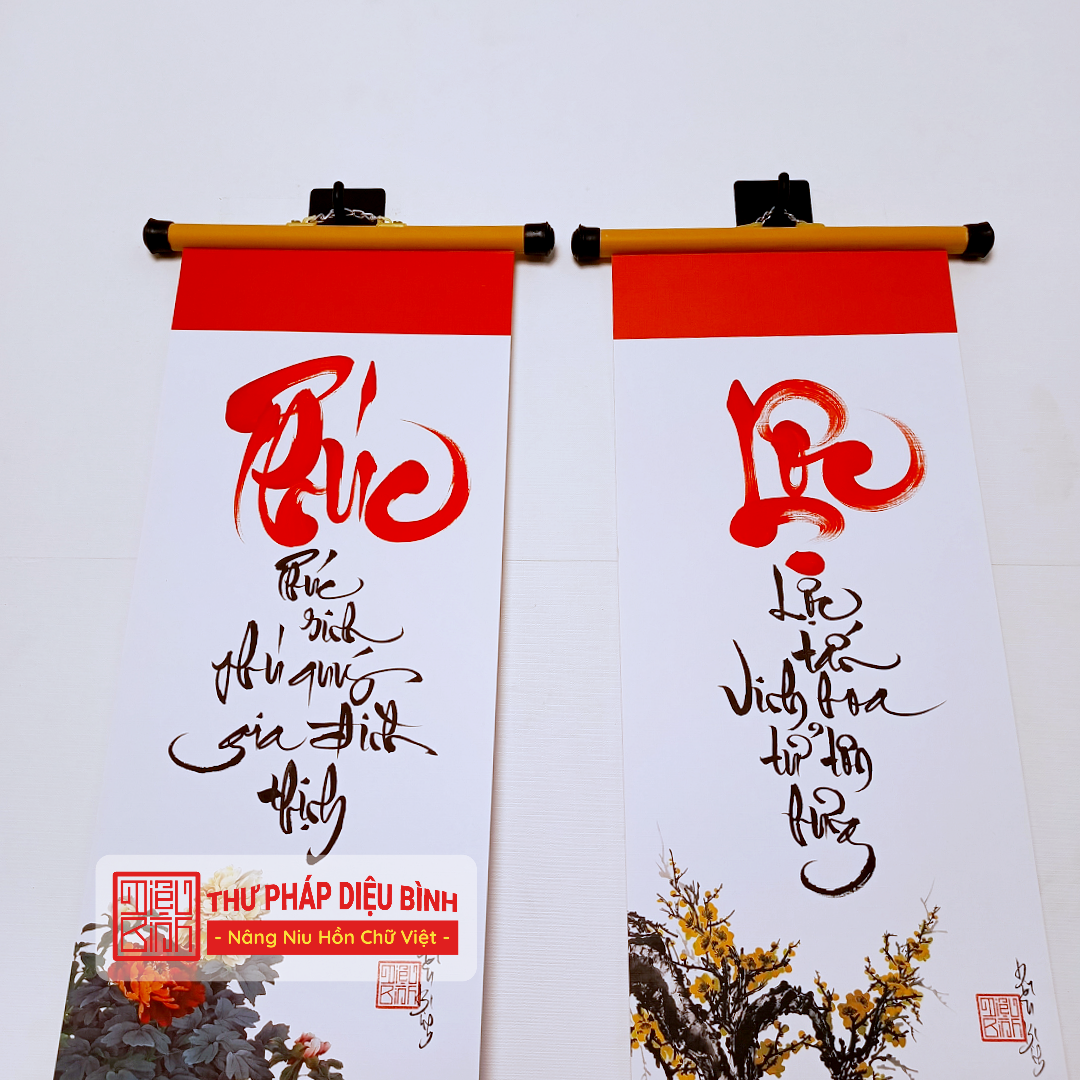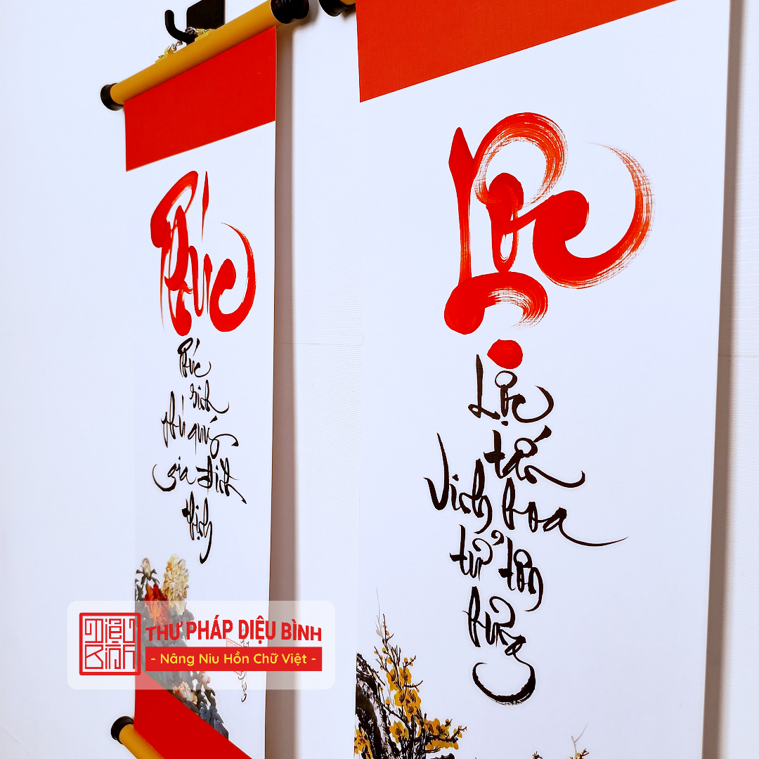 Mỗi liễn trong bộ combo được viết bằng nét bút thủ công tinh tế trên giấy trắng in hoạ tiết cổ tạo nên một nét đẹp sang trọng mà vững bền với thời gian.